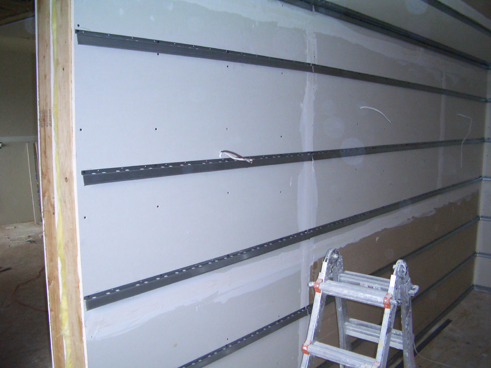 Resilient channel clearly visible here. The RC adds 1/2" inch to the thickness of the walls.
