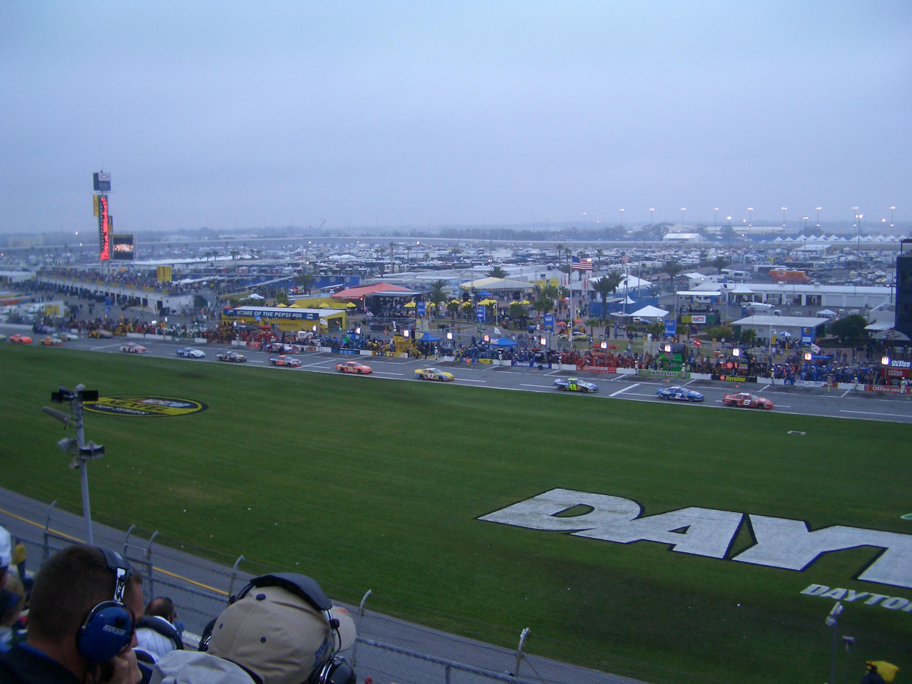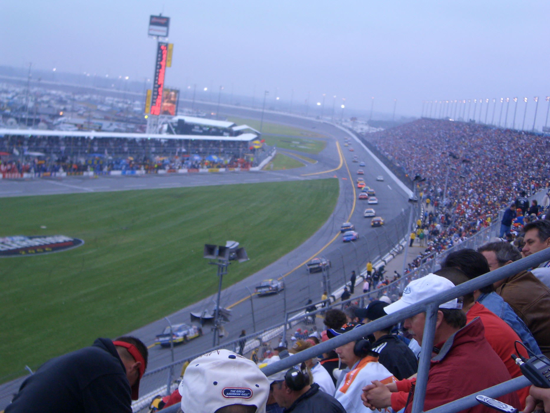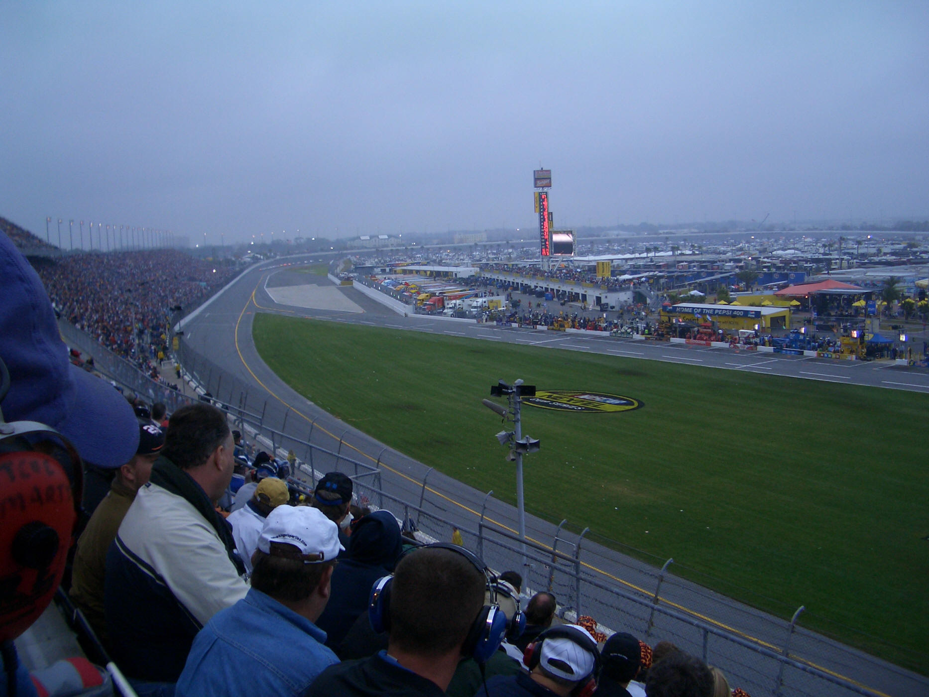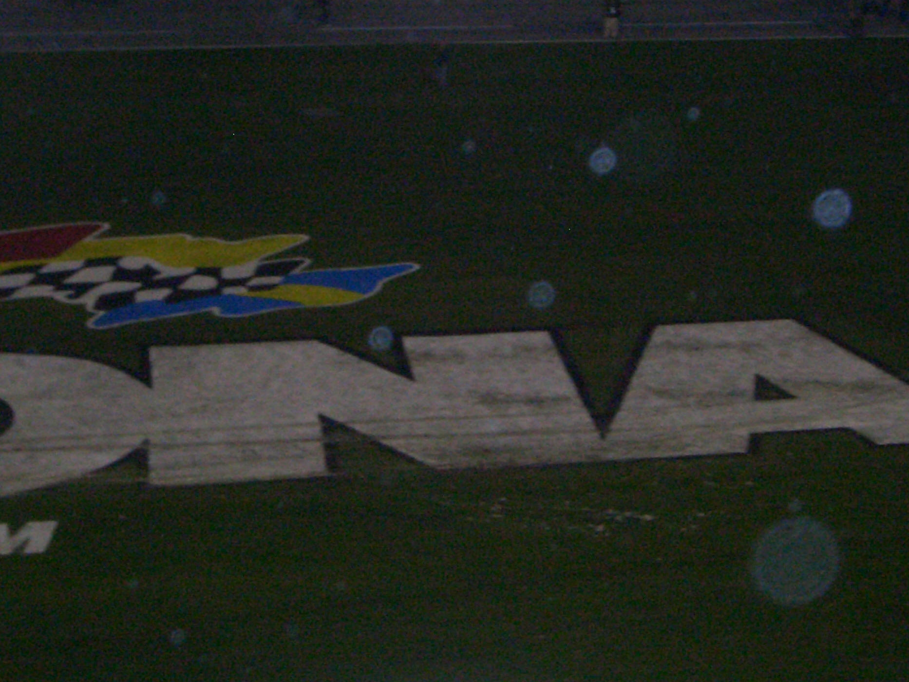 Jimmy Johnson burn out marks on the Daytona emblem. Yep, that's rain on the lens. We finished just in time.